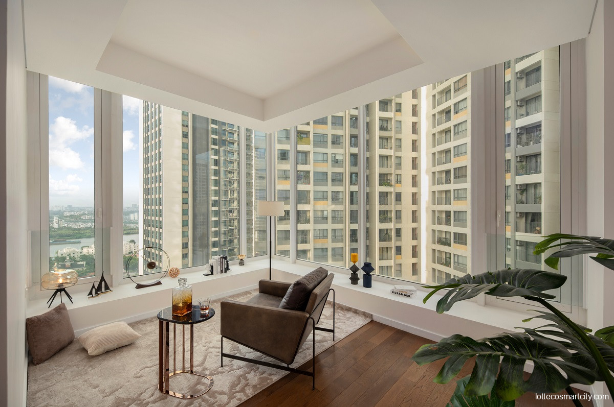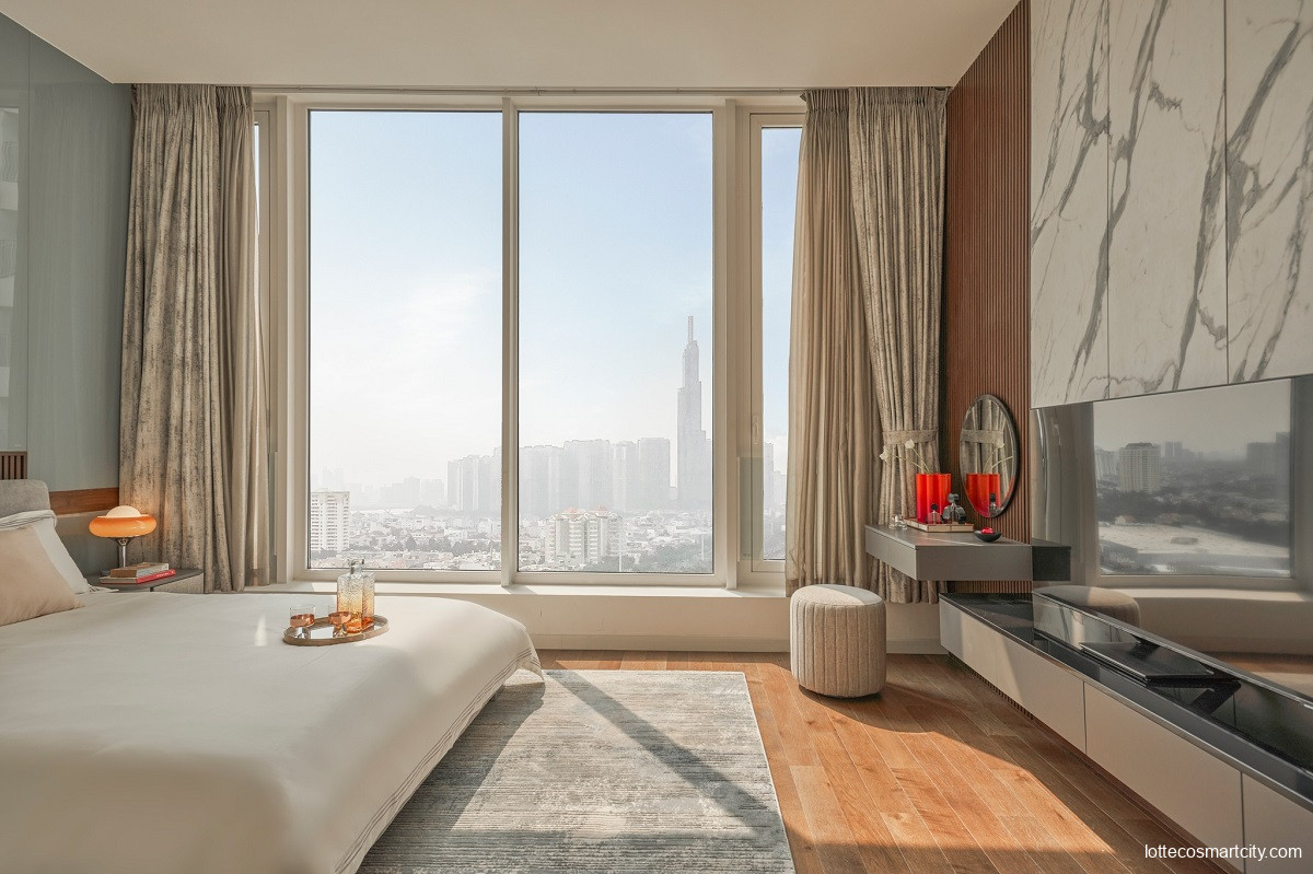 Mọi layout căn hộ, từ 1 đến 3 phòng ngủ hay Penthouse, đều được ưu tiên sở hữu ban công rộng mở. Thiết kế này giúp gia chủ tận hưởng tầm nhìn "triệu đô" hướng về dòng sông Sài Gòn thơ mộng hoặc nhịp sống sôi động của bán đảo Thảo Điền. Đặc biệt, các phòng ngủ chính (Master Bedroom) luôn được bố trí tại các góc thoáng nhất, giúp chủ nhân thức giấc cùng bình minh tuyệt đẹp ngay tại giường ngủ.